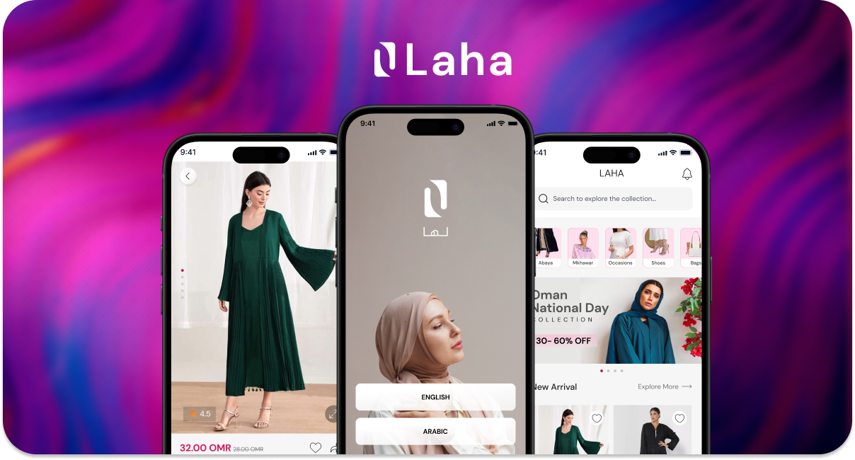 Laha is a mobile-first e-commerce platform designed for buying and selling abayas across the GCC region. We developed the complete digital product from the ground up—including brand identity, UX/UI design, and cross-platform development—to help the founder bring the idea to market with limited budget and resources.